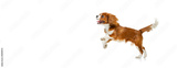 Portrait of beautiful cute dog, King Charles Spaniel isolated over white studio background. Concept of motion, beauty, fashion, breeds, pets love, animal