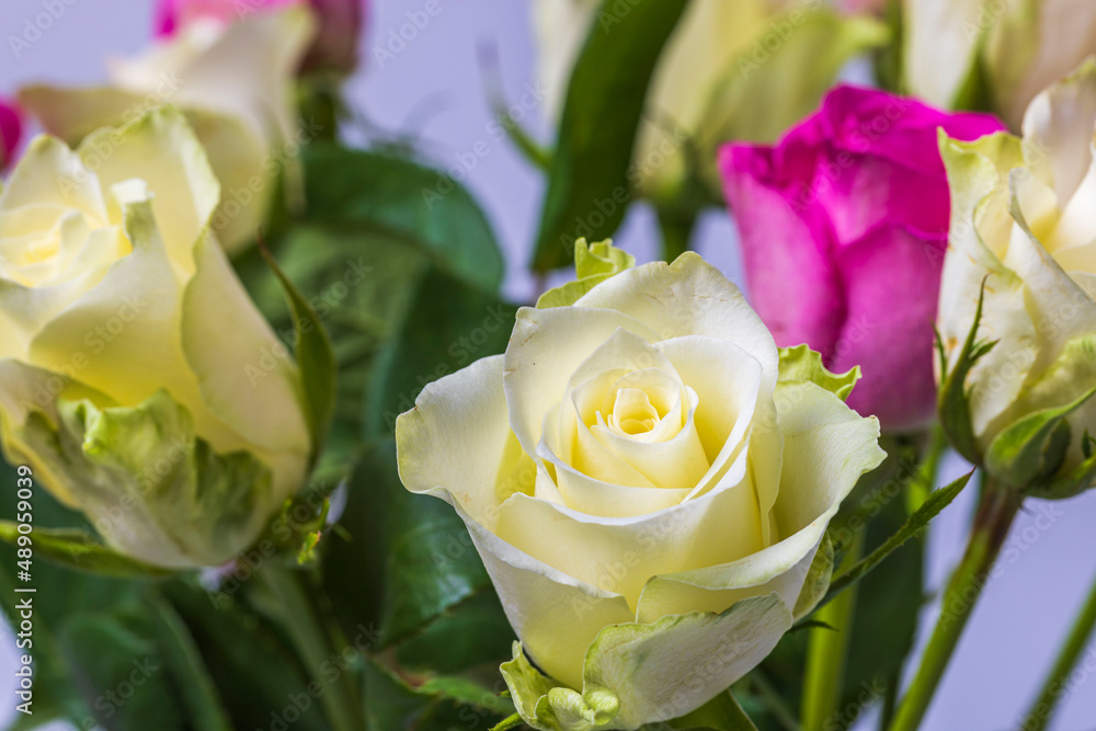 Macro view of white rose flower. Natural beauty backgrounds.