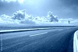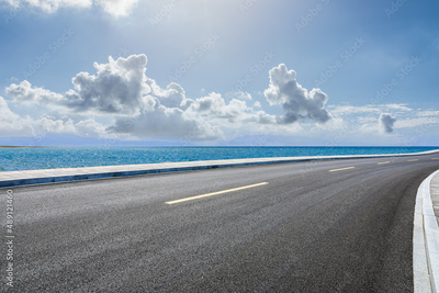 Asphalt road and sea natural scenery under blue sky