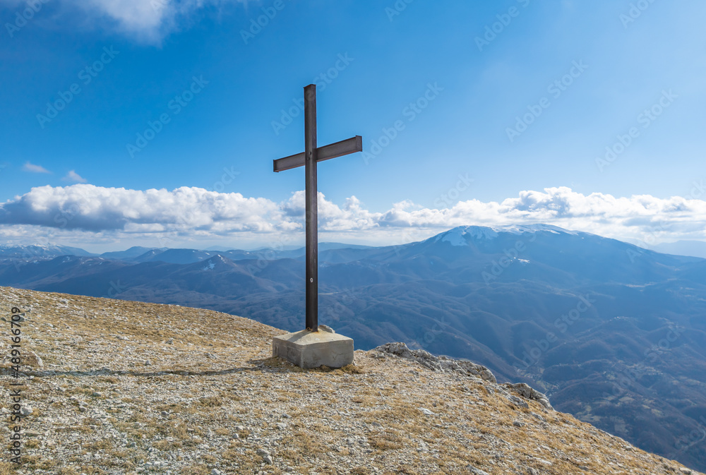 Monte Giano in Antrodoco (Italy) - A peak view of Monte Giano with snow. Summit of almost 2000 meters, Giano Mount is in province of Rieti, lazio Region, located in Apennines range.