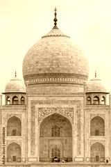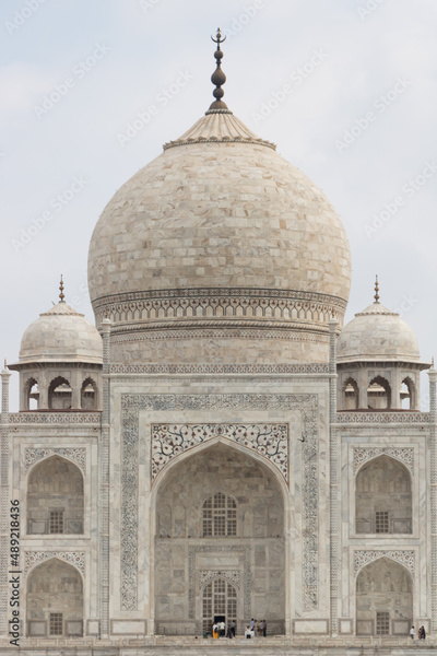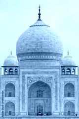 Beautiful view of the famous Taj Mahal against a light blue sky