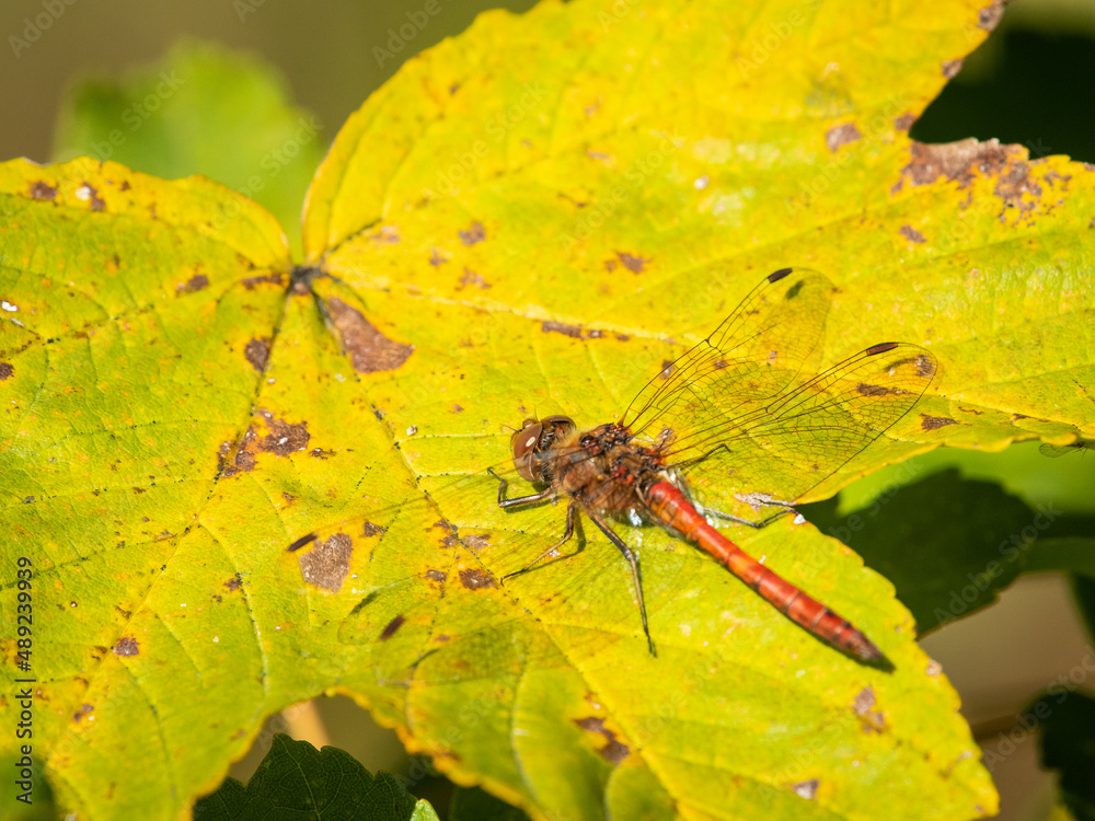 A vagrant darter dragonfly resting in the sun