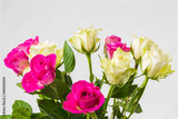 Beautiful view of white and red roses flowers. Natural beauty backgrounds.