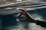 プリズムを持つ女性の手