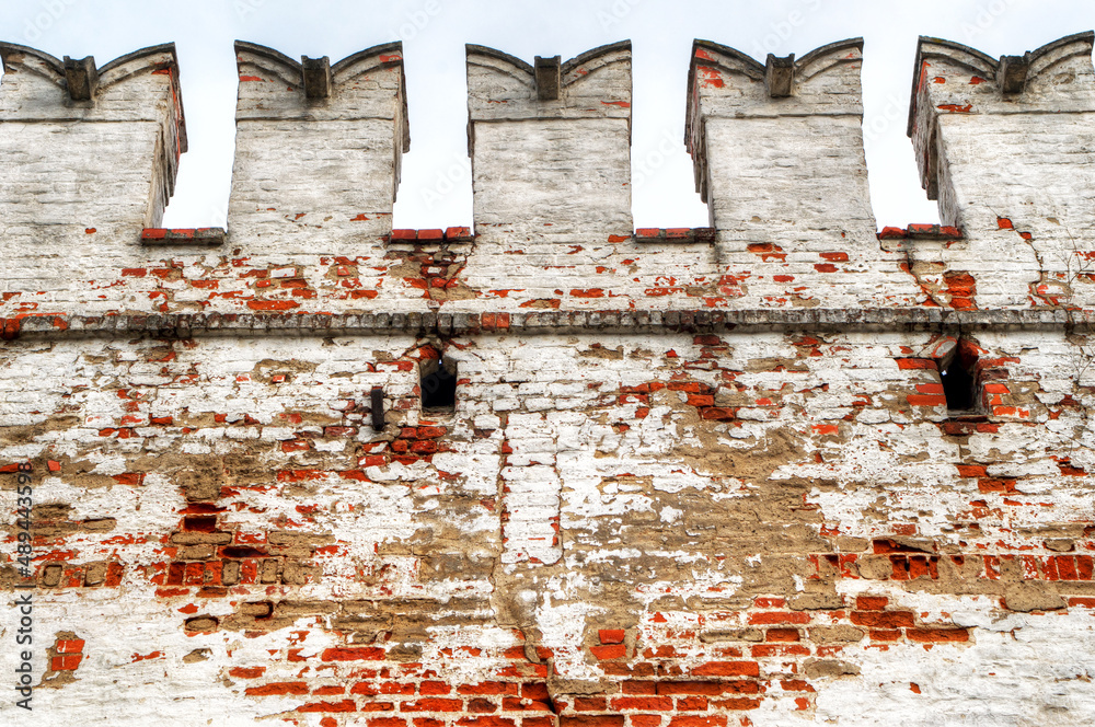 Old fortress wall of Novodevichy convent close-up, Moscow, Russia