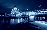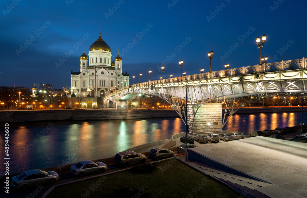 Cathedral of Christ the Savior and Patriarshy bridge at night, Moscow, Russia