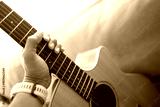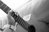 close up of a person playing guitar