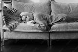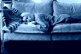 Depressed lonely unhappy mental woman sitting alone on the sofa feel stress
