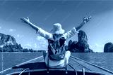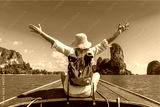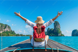 Happy traveler woman on boat joy fun nature view scenic landscape Railay beach Krabi, Attraction famous place tourist travel Phuket Thailand summer holiday vacation trip, Beautiful destination Asia