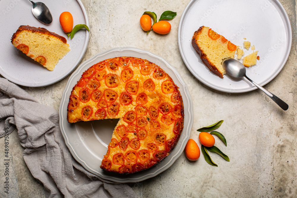 Kumquat Upside Down Cake. Homemade. Directly above.