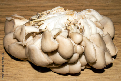 Fresh oyster mushrooms on a white background.Oyster mushrooms grown at home.Oyster mushrooms background.Oyster mushroom is common.