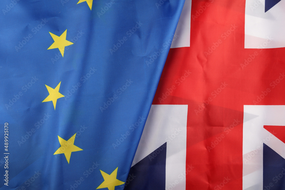 EU and UK flag close-up