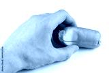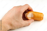 Raw sausage in hand isolate