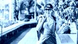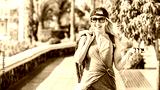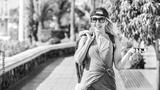 Millenial woman fashion travel influencer listening music podcast at summer trip - Wanderlust vacation concept with adventure girl wanderer on excursion in Playa de Las Americas - Warm bright filter