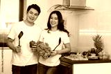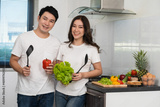 couple cooking and preparing vegetables in the kitchen at home