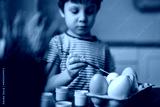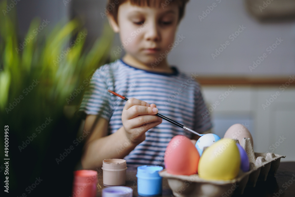 Cute little boy colouring eggs for easter