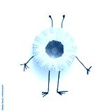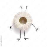amusing little aliens made of sea urchin skeleton, a with sketchily drawn legs and antennae,