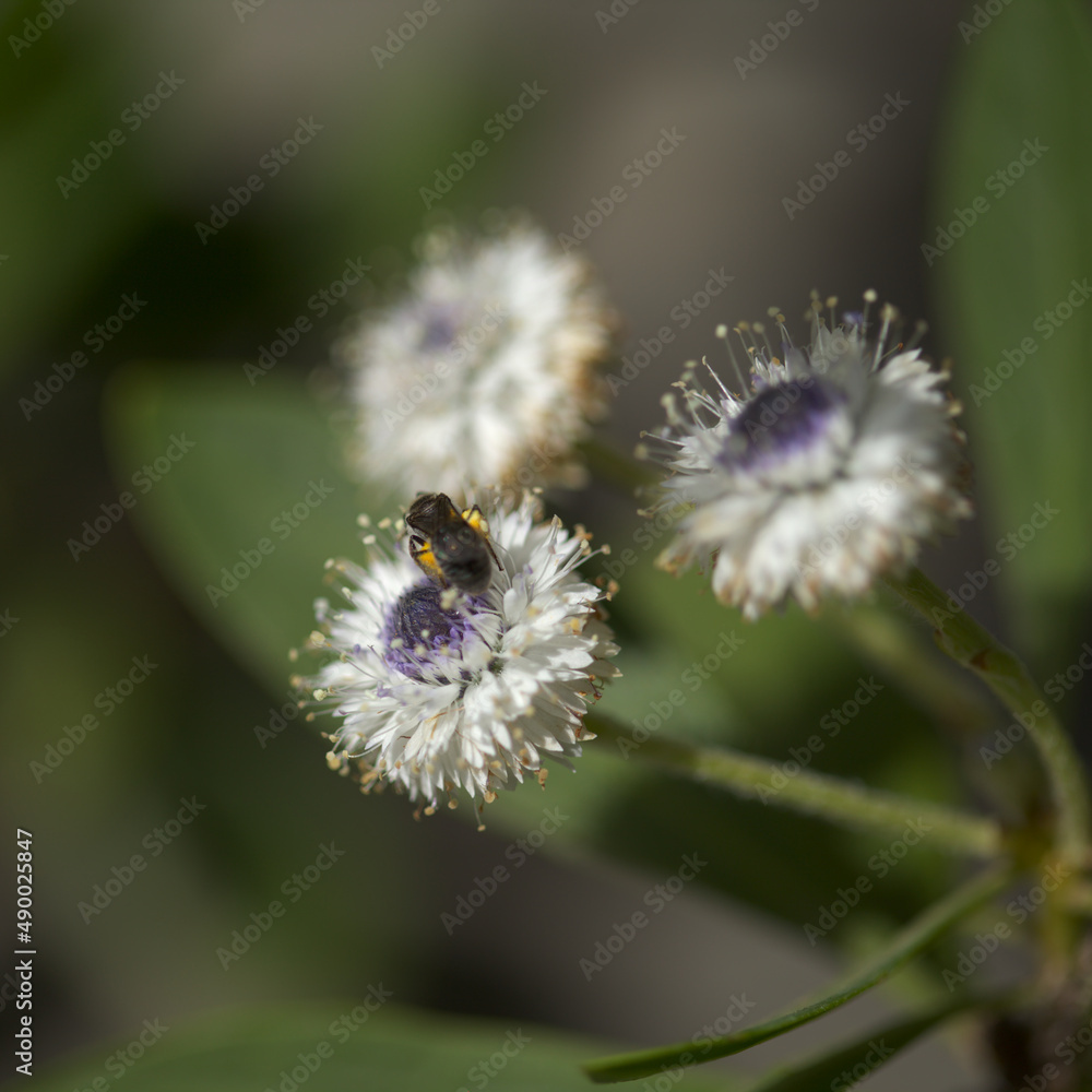 Flora of Gran Canaria - small pale blue flowers of Globularia ascanii, globe daisy endemic to the island, natural macro floral background