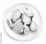 Beef bone marrow in white plate isolated on white background, Beef Stock Bone, Marrowbone on white With clipping path.