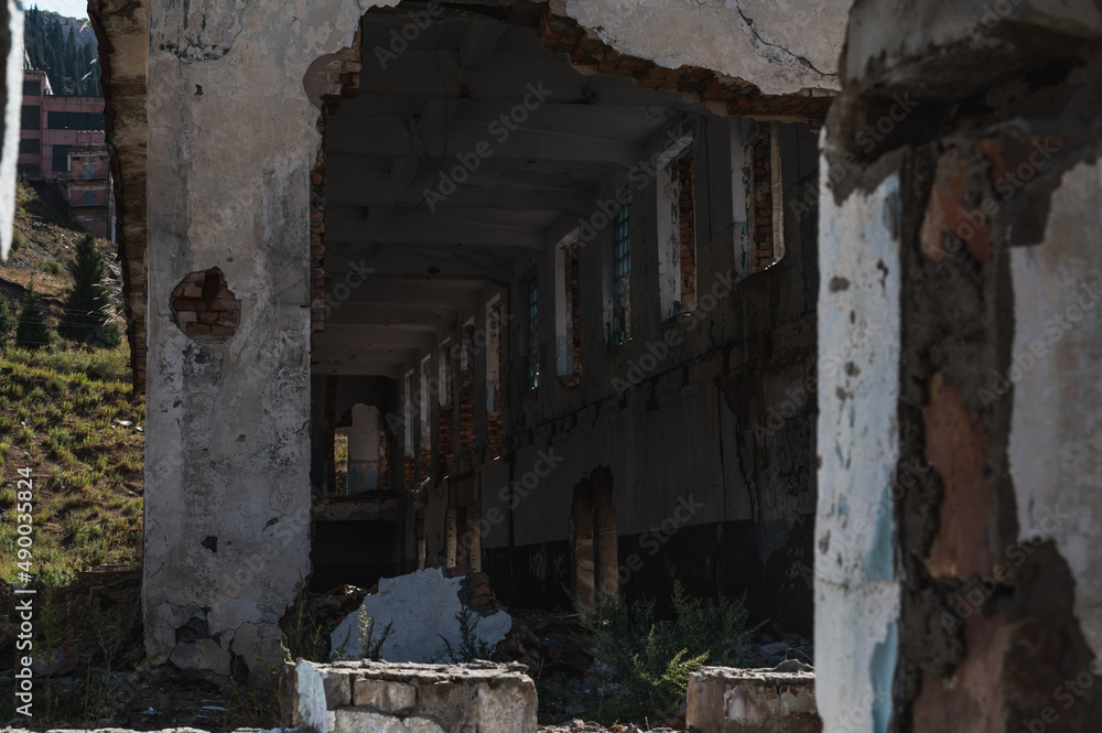 Abandoned ruins of an industrial building. The concept of destruction and demolition.
