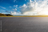 Empty asphalt road platform and beautiful blue sky with white clouds at sunrise