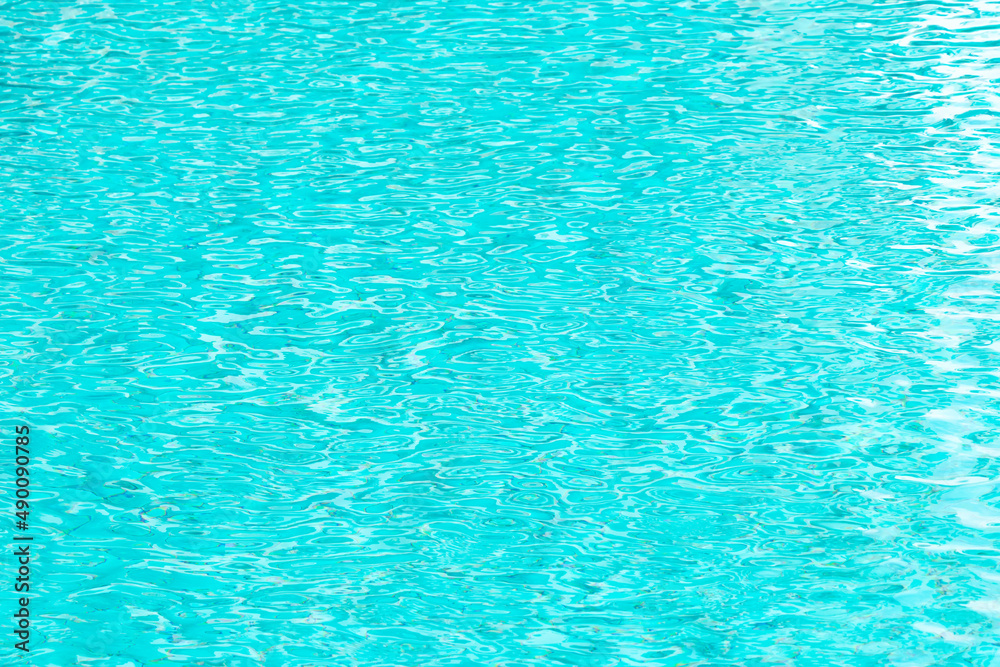 Ripple Water in swimming pool with blue tile floor background