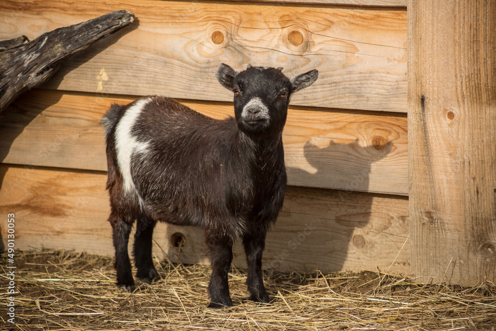 Mini goat enjoying sun