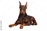 brown doberman dog lying down