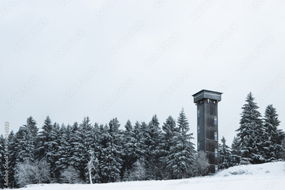 Black tower deep in the woods.