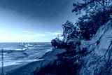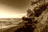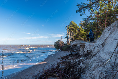 A wooden footbridge leading to the sea after a storm and a landslide, Kolka, Latvia.