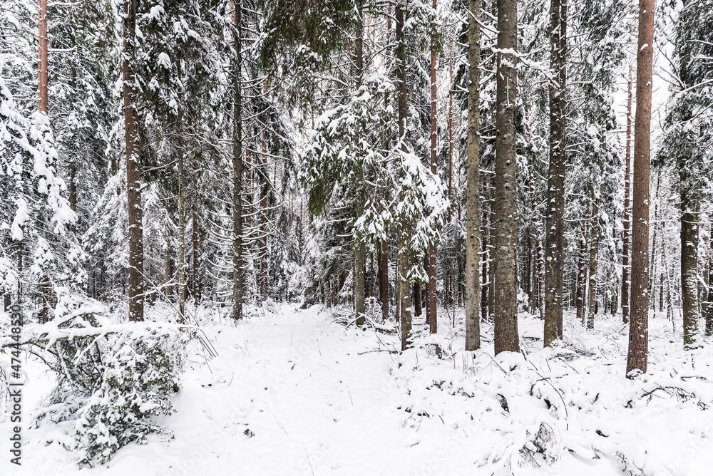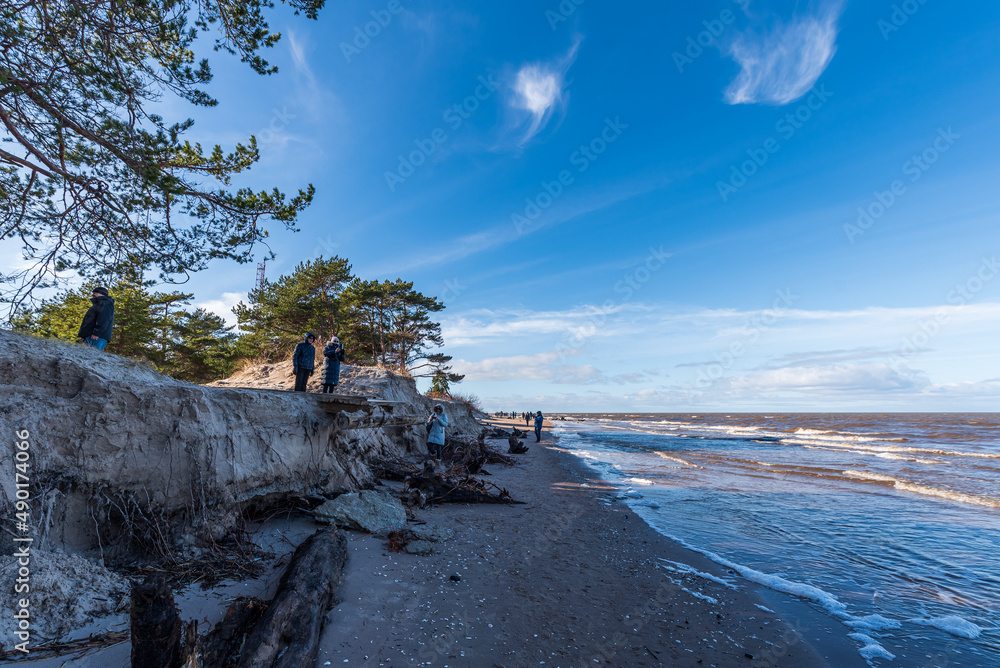 Storm broken trees on the Baltic sea coast, Kolka, Latvia.