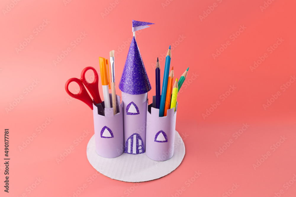 easy activity to do, Castle toilet paper roll craft for kid and kindergarten, DIY, art project from recycled materials