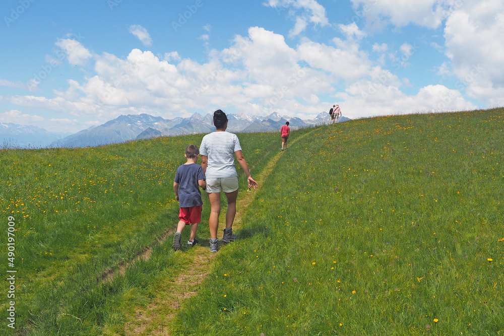 Beautiful view of people walking on St. Leonhard in Passeier, South Tyrol, Northern Italy