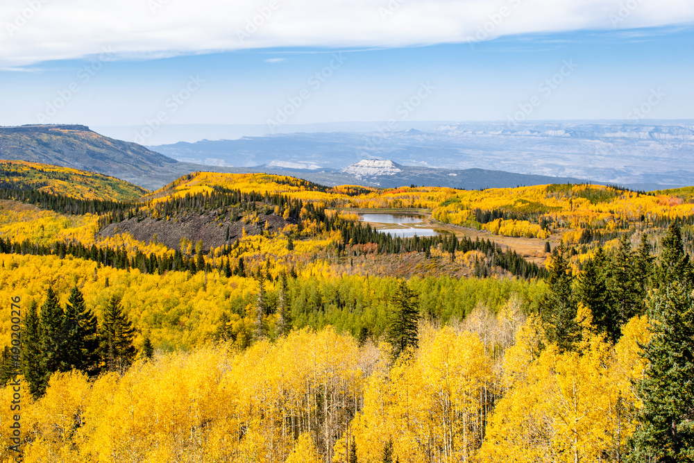 Beautiful autumn landscape with yellow trees and hills in Grand Junction, Grand Mesa
