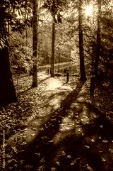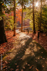 Vertical shot of a trail through the sunny Hungry Mother State Park on an autumn day in Virginia
