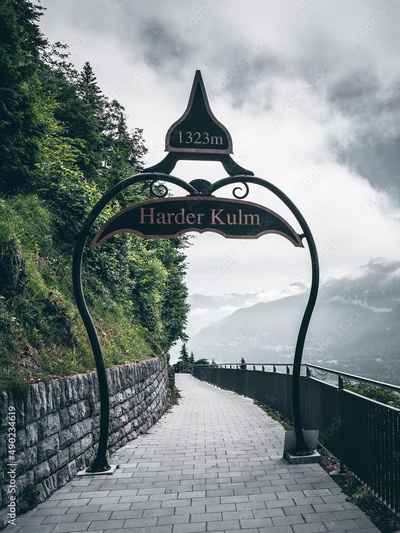Vertical shot of a sign to Harder Kulm in Switzerland