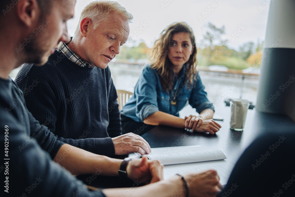 Businessman checking agreement document in the meeting