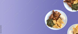Homemade Creole chicken with breadfruit served in the Caribbean on gradient 2022 trend color background Very Peri
