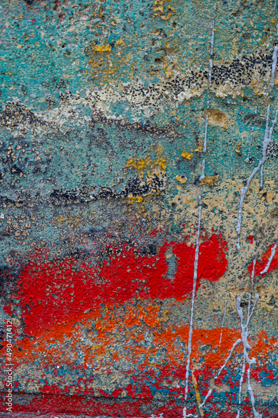 abstract colored texture. Old scratches, stain, paint splats, spots on the wall
