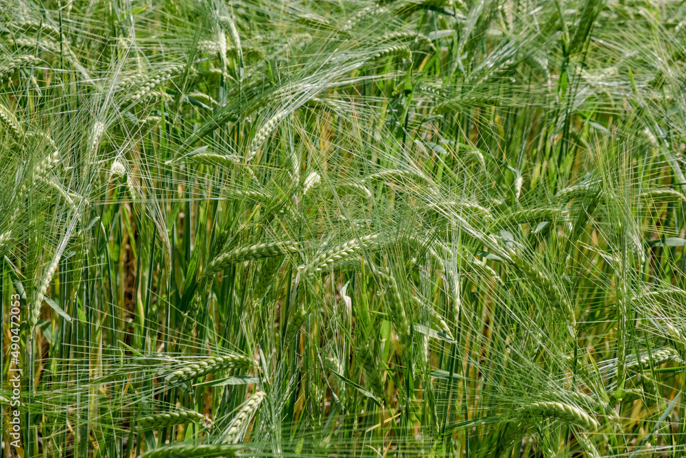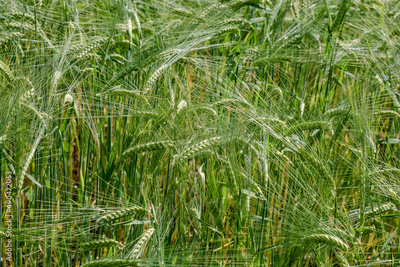 green wheat field in summer time