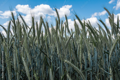 green wheat field in summer time