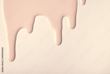 Light brown liquid drops of paint color flow down on beige background. Abstract cream backdrop with fluid drip pattern