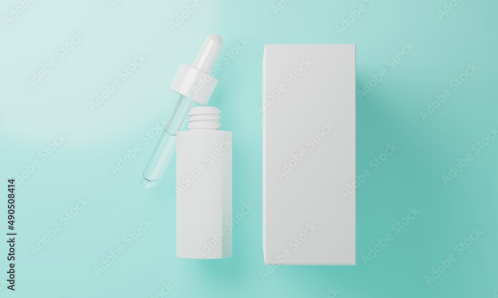 skin care serum cosmetic bottle, 3d rendering illustration mockup, medical lotion serum dropper product