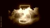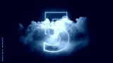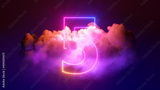 3d render, neon linear number five and colorful cloud glowing with pink blue neon light, abstract fantasy background