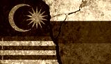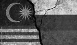 Political relationship between Malaysia and russia. National flags on cracked concrete background