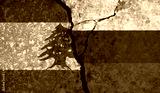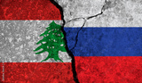 Political relationship between Lebanon and russia. National flags on cracked concrete background