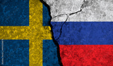 Political relationship between Sweden and russia. National flags on cracked concrete background