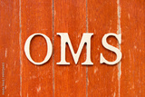 Alphabet letter in word OMS (Abbreviation of Order management system or Operations management system) on old red color wood plate background