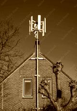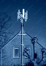 Small power generator for homes, vertical axis wind turbine mounted on a house exterior