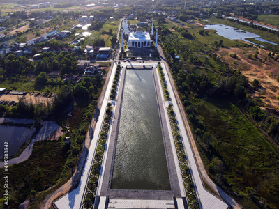Aerial drone view of Central Mosque of Songkhla Province in Thailand